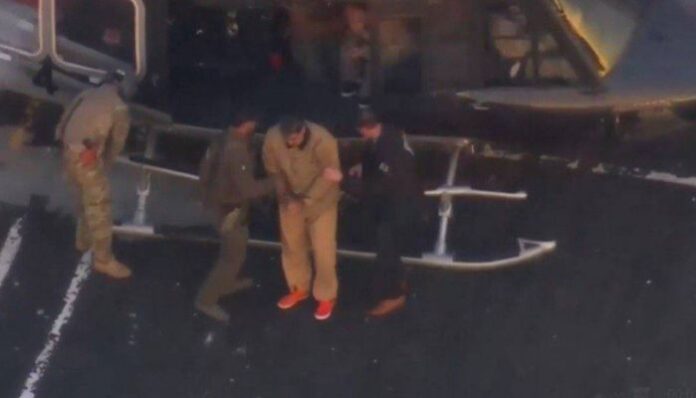 Nas imagens televisionadas é possível ver Maduro, de 63 anos, algemado e escoltado por vários militares fortemente armados. Sua mulher, Cilia Flores, também foi levada pelos agentes.