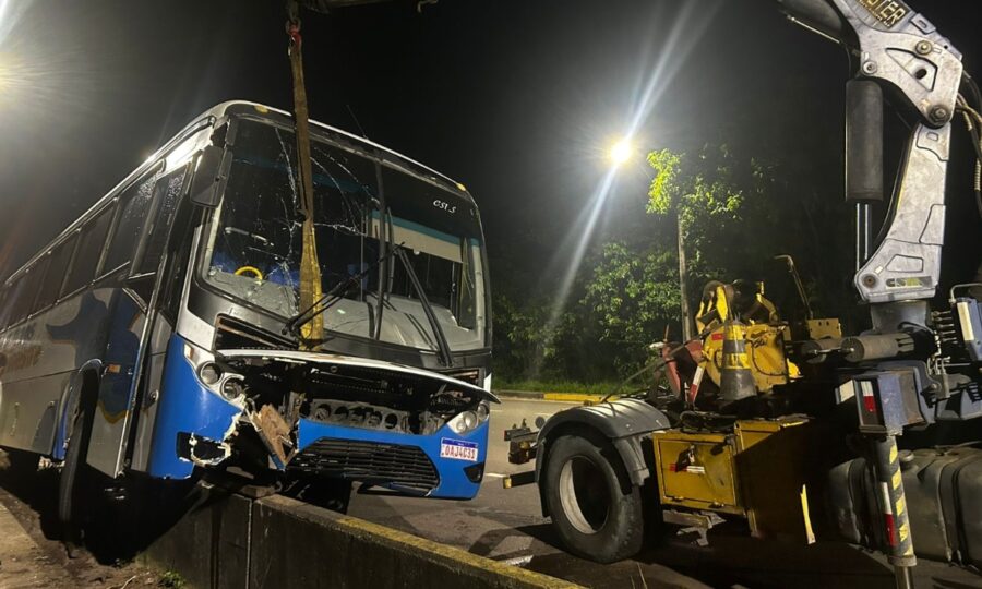 No momento da colisão, o coletivo estava sem passageiros, o que evitou feridos. Apesar disso, o impacto provocou danos à estrutura de proteção da avenida e chamou a atenção de motoristas que passavam pelo local.