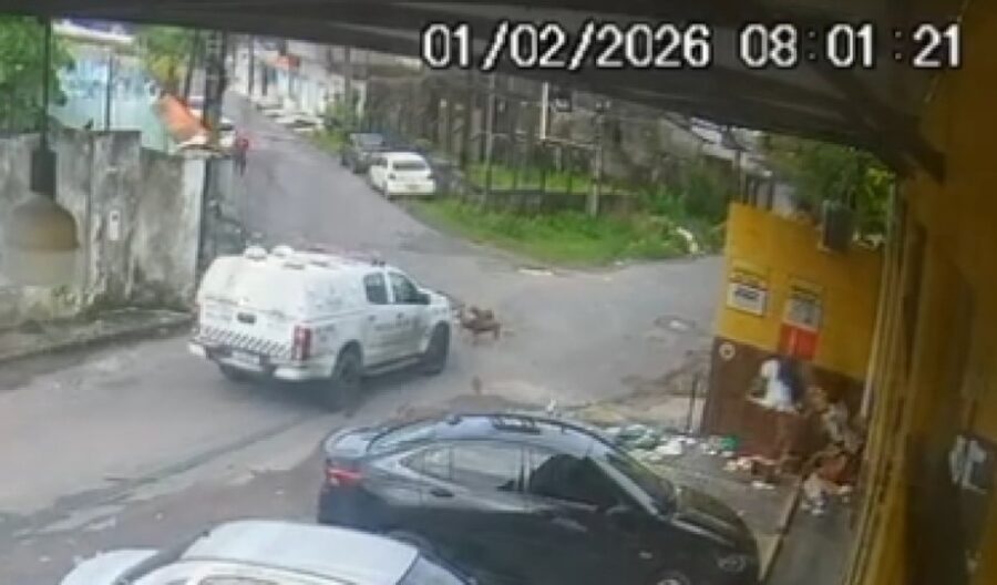 O atropelamento foi registrado por câmeras de vigilância instaladas na área. As imagens mostram o momento em que a viatura atinge os dois cães, que estavam junto a outros animais no meio da via.
