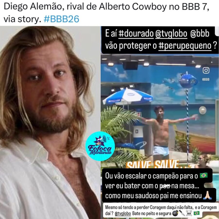O ex-BBB Diego Alemão, campeão da sétima edição do Big Brother Brasil, voltou a movimentar as redes sociais ao pedir publicamente uma vaga no Big Brother Brasil 26. O motivo, segundo ele, seria um reencontro direto com Alberto Cowboy, seu principal rival no BBB7, que retornou ao reality como participante veterano nesta edição.