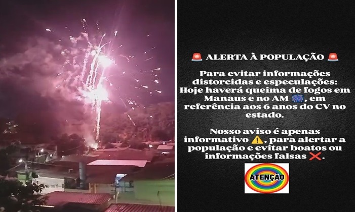 Na noite desta terça-feira (10), um intenso foguetório foi registrado em diversos bairros de Manaus e gerou medo entre moradores. Segundo informações preliminares, integrantes de uma facção criminosa teriam anunciado previamente, por meio de redes sociais e aplicativos de mensagens, que realizariam a queima de fogos como forma de demonstração de poder e comemoração interna do grupo.