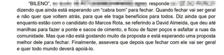 As investigações revelam conversas via WhatsApp entre líderes do CV e assessores ligados ao núcleo político do prefeito. Nos áudios, criminosos orientam votos em David Almeida e mencionam acordos para a realização de obras de infraestrutura e regularização de áreas invadidas em troca do apoio eleitoral. Confira o áudio logo abaixo: