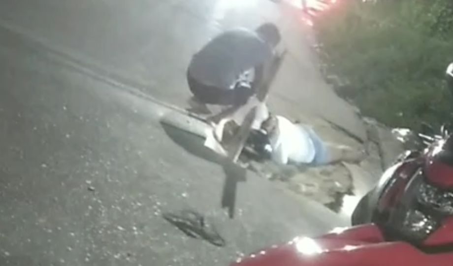 Imagens que circulam nas redes sociais mostram o momento em que pessoas que estavam nas proximidades se aproximam para prestar socorro à vítima logo após o acidente.