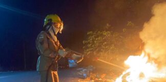 Bombeiros da Operação Céu Limpo combatem incêndio em área de vegetação no bairro Distrito Industrial
