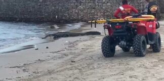 [Vídeo]: Jacaré gigante é visto na beira da praia da Ponta Negra e assusta banhistas...