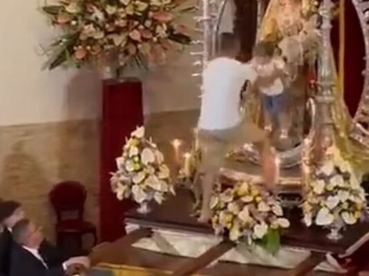 VÍDEO: Em ato de desespero, pai coloca filho com câncer aos pés de santa pedindo cura