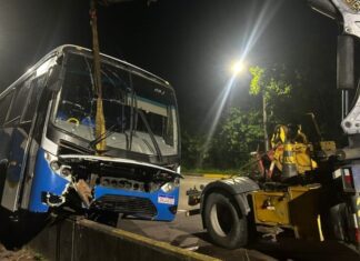 Ônibus sobe em barreira de proteção após acidente na Avenida das Torres em Manaus