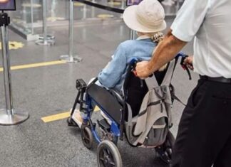 Idoso tenta embarcar em avião com esposa morta em cadeira de rodas