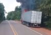 Caminhão é destruído por incêndio na BR-174 próximo à Reserva Waimiri Atroari
