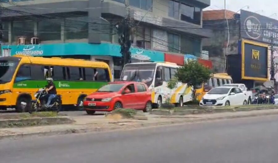 [Vídeo]: Colisão entre “Amarelinhos” deixa trânsito parado na Avenida Grande Circular em Manaus
