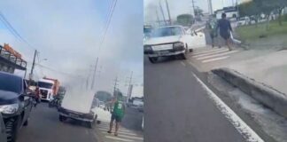 Carro pega fogo e causa congestionamento na Avenida das Torres em Manaus