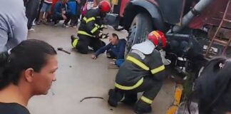 [Vídeo]: Homem vai parar debaixo de caminhão durante acidente na Avenida das Torres em Manaus