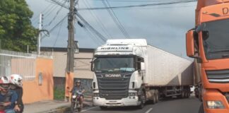 [Vídeo]: Tráfego fica lento na Avenida das Torres por conta de carreta atravessada em Manaus