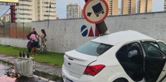 Condutor colide contra muro e derruba transformador na Avenida Efigênio Salles em Manaus