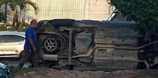 Veículo capota na Avenida Torquato Tapajós e deixa tráfego lento em Manaus