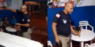 [VÍDEO] l Policial Militar agride mulher e toma garrafa no meio da cabeça
