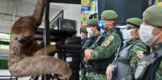 Polícia Militar do Amazonas resgata bicho-preguiça na zona leste de Manaus