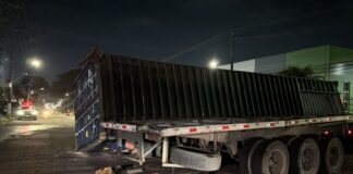Motorista sai ileso após tombamento de contêiner em Manaus