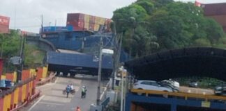 Contêiner tomba e bloqueia entrada do Porto Chibatão na Zona Sul de Manaus