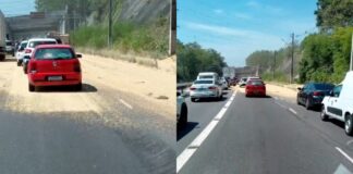Acidente com carreta trava o trânsito e deixa pista escorregadia na Zona Norte de Manaus