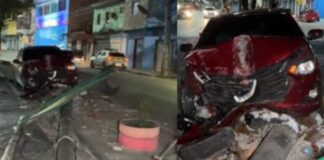 Carro colide com poste e causa queda de estrutura na Avenida Cosme Ferreira em Manaus