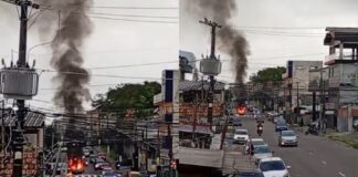 Fogo em carro no cruzamento da Avenida Paraíba provoca congestionamento em Manaus