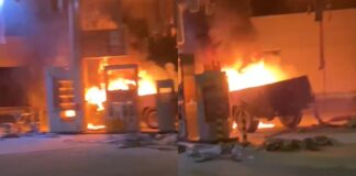[Vídeo]: Veículo é consumido por incêndio em posto de combustíveis em Manaus