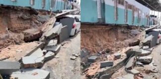 Muro de feira desaba e atinge veículos durante temporal em Manaus