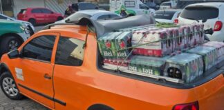 Viatura da BPTRAN é vista transportando caixas de cerveja em Manaus