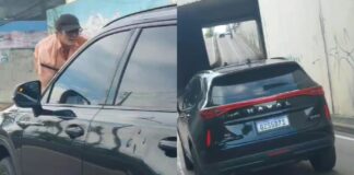 [Vídeo]: Idoso é flagrado sendo arrastado em cima de capô de veículo em Manaus