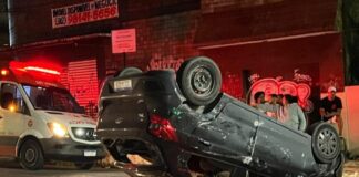 Acidente de trânsito: carro capota após colisão no centro de Manaus