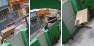 VÍDEO: Irritado por não encontrar ninguém em casa, entregador arremessa caixa com TV por cima...
