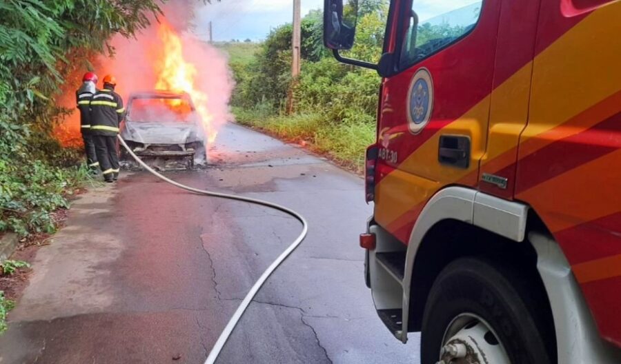 Na BR-174, Corpo de Bombeiros combate incêndio em veículo e impede propagação para área de...