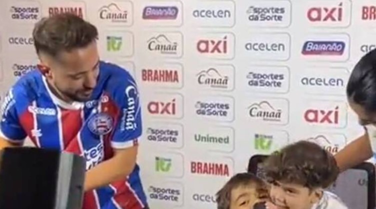 Durante apresentação de Everton Ribeiro no Bahia, filho do jogador canta hino do Flamengo