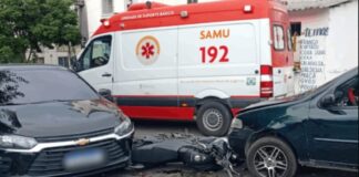Motociclista fica gravemente ferido após colisão entre carros no Monte das Oliveiras em Manaus