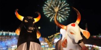 Caprichoso e Garantido fazem a festa de boi-bumbá para o lançamento do 58º Festival de...