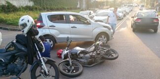 Estudante fica ferida após ser atingida por motocicleta na Avenidas das Flores em Manaus