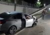 Carro colide com poste e deixa trânsito afetado na Avenida das Torres em Manaus