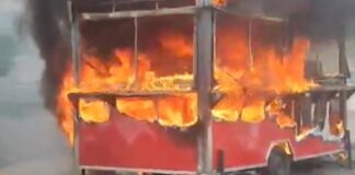 Em Manaus, ônibus de rota é consumido por incêndio no Japiim