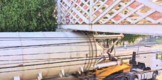 [Vídeo]: Caminhão fica preso em passarela na Avenida Coronel Teixeira em Manaus