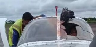 [Vídeo]: Urubu fica preso em cabine de avião após colisão no Amazonas