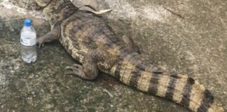 Filhote de jacaré é encontrado ferido em rua do Parque Dez na Zona Centro-Sul de...