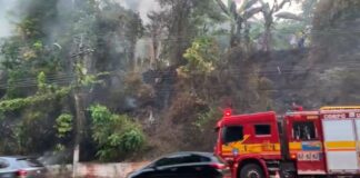 Incêndio atinge área de mata na Avenida Mário Ypiranga na Zona Centro-Sul de Manaus