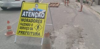 Moradores de Petrópolis fazem tapa-buracos por conta própria e instalam placa de protesto contra David...