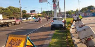 Veículo de aplicativo colide com poste após motorista cochilar na Torquato Tapajós em Manaus