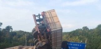 Carreta despenca de ponte e fica pendurada em Igarapé na BR-319 no Amazonas