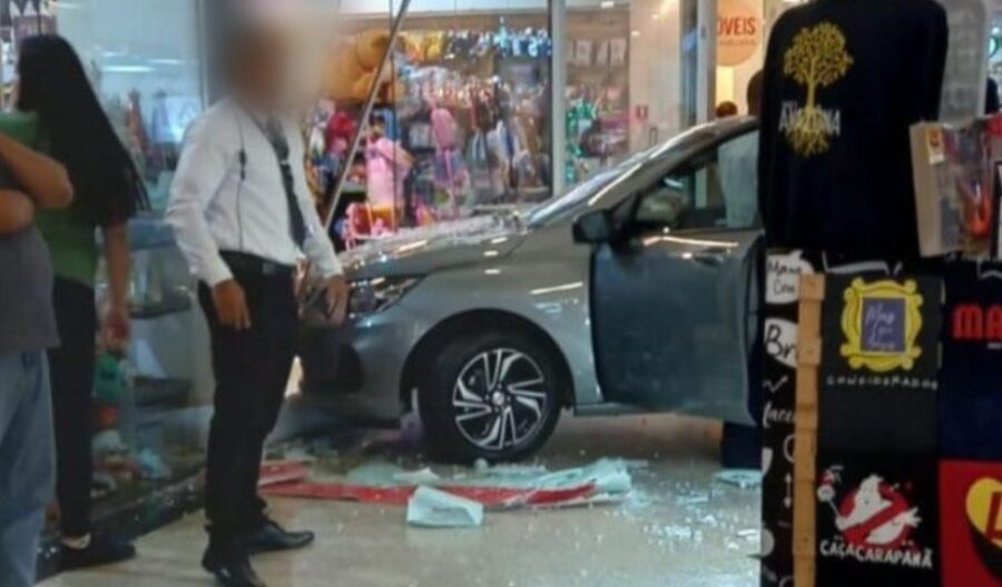 Mulher causa acidente dentro de Shopping de Manaus após ligar carro de exposição
