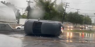 Veículo capota durante forte temporal na Zona Centro-Sul de Manaus