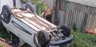 Motorista perde controle de veículo e capota no São Jorge em Manaus