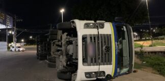 [Vídeo]: Caminhão tomba próximo ao Detran-AM na Zona Norte de Manaus